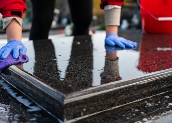 le lavage, le brossage et le séchage de la tombe et de ses ornements, qu’ils soient en pierre brute ou en pierre polie.